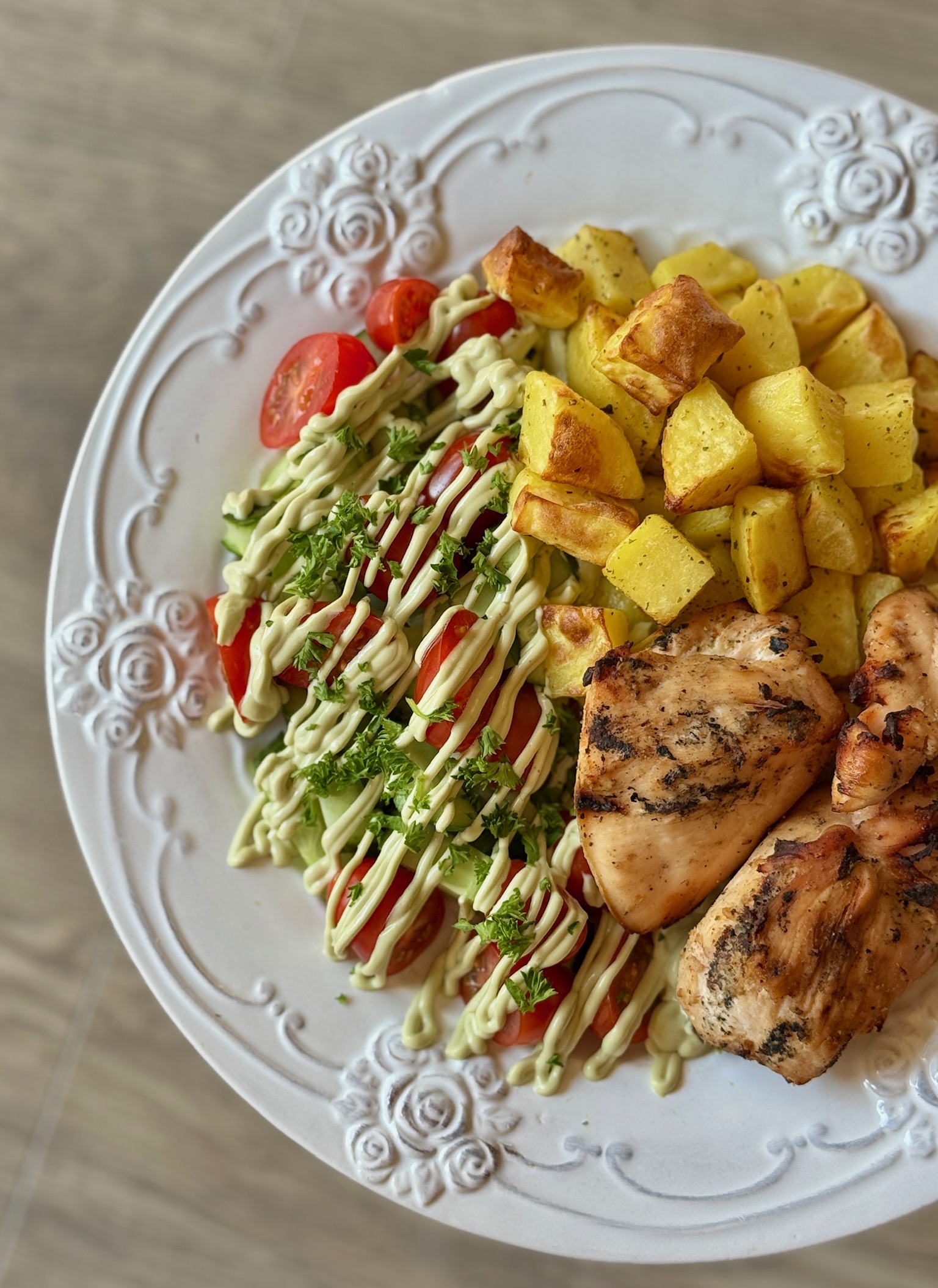 - Valmista blenderis Kreeka jogurtist ja avokaadost salatikaste, maitsesta küüslaugu, sidrunimahla, pipra ja soolaga.